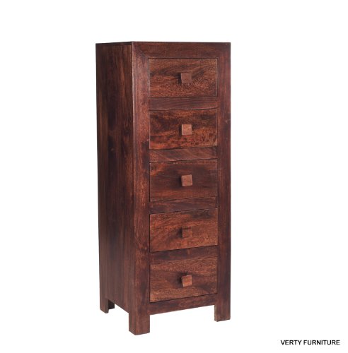 DARK MANGO HARD WOOD TALL CHEST OF 5 DRAWERS INDIAN FURNITURE Product Description