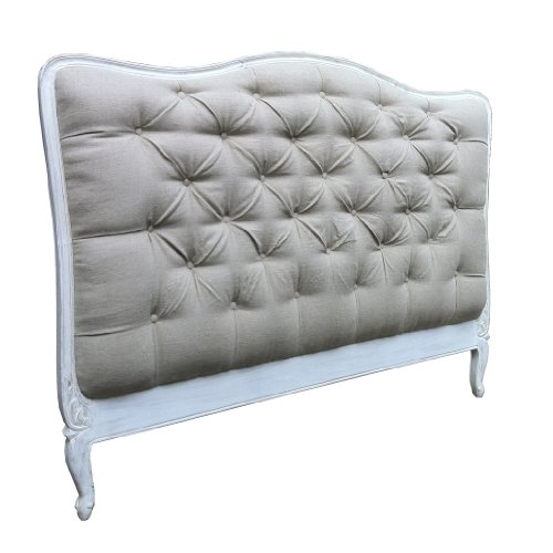 Description: Wooden Shabby Chic French Style Upholstered Headboard King size in white distressed finish. Upholstery in Natural Linen.