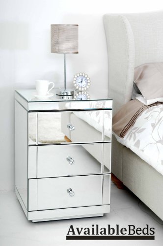 Mirrored Furniture Bedside Table cabinet 3 Drawers - (Chelsea range)- LUCIA Product Description