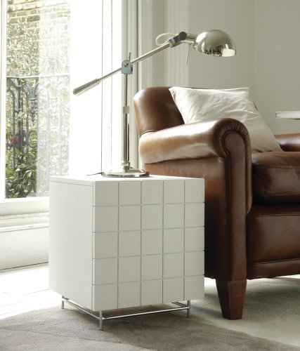 A compact little unit, this design makes perfect sense as a sofa end table as well as a bedside cabinet. Finished in matt white lacquer inside and out this handy companion includes an adjustable internal glass shelf and spring loaded push catch door openings.
