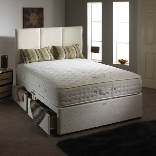 Natural ALOE VERA Divan BED Set, 2 DRAWERS Either Side, with MEMORY FOAM Pocket Sprung Mattress, Headboard not included, Size: 5ft King Size - other sizes available Product Description
