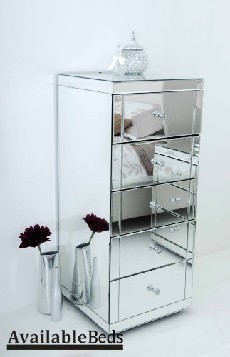 Reflections JULIANNA/PERSES 5 Drawer Mirrored Tallboy with Plinth Product Description